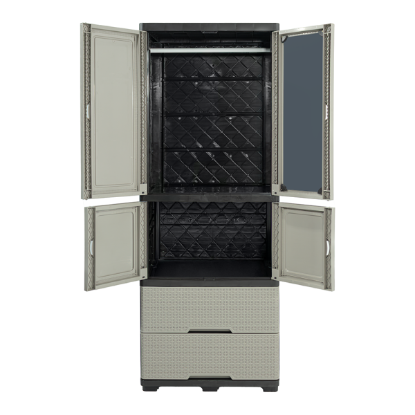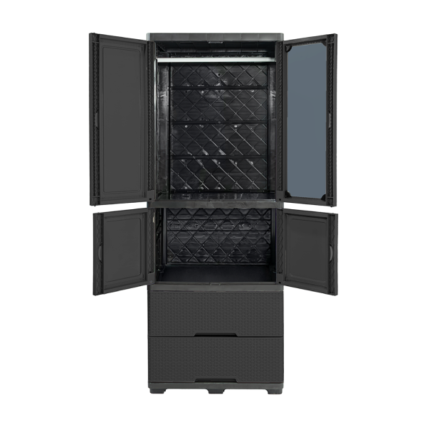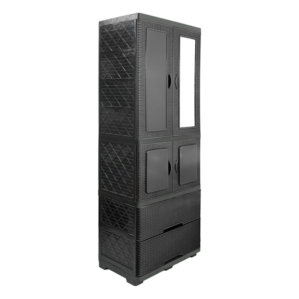 Su diseño de puertas dobles y amplio espacio interior lo convierte en una solución versátil para mantener el orden con estilo