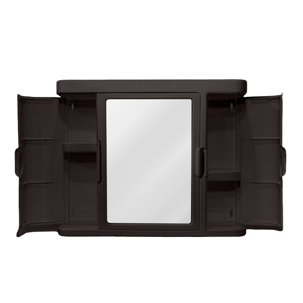 El Gabinete de Baño Zendra combina funcionalidad y diseño moderno. Fabricado 100% en plástico de alta resistencia, incorpora espejo central y compartimientos laterales ideales para mantener el orden y optimizar el espacio dentro del baño.