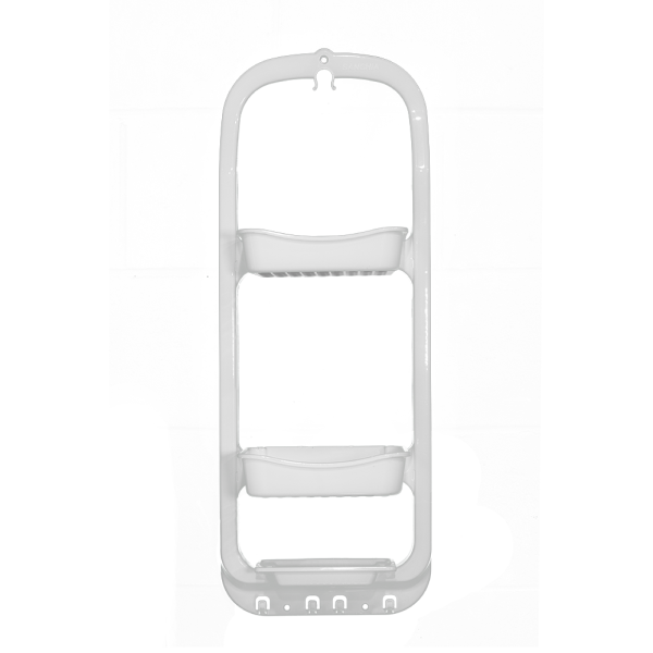 Optimiza el espacio de tu baño con este práctico organizador de ducha. Cuenta con dos repisas amplias para colocar shampoo, acondicionador, jabones y otros accesorios de higiene. Su estructura incluye ganchos inferiores para colgar esponjas o rasuradoras, y un sistema de drenaje que evita la acumulación de agua, manteniendo todo limpio y seco.